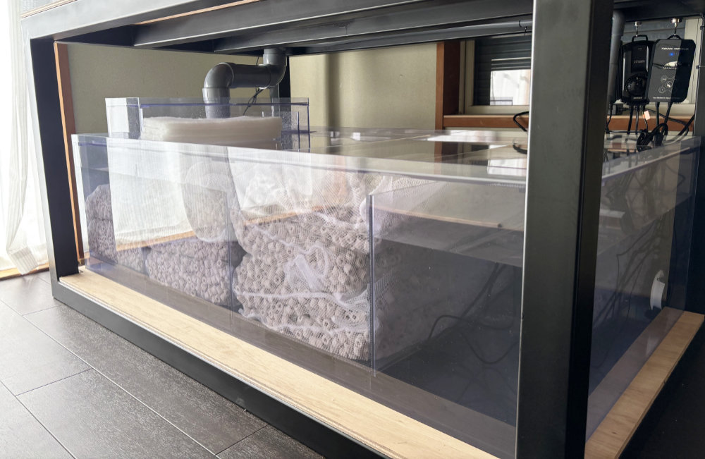 ろ過槽は横幅約140cmの4層構造となっており、多量のろ材を収納できるよう設計しているため、水量の多いレイアウトでも安定した水質維持が可能です。